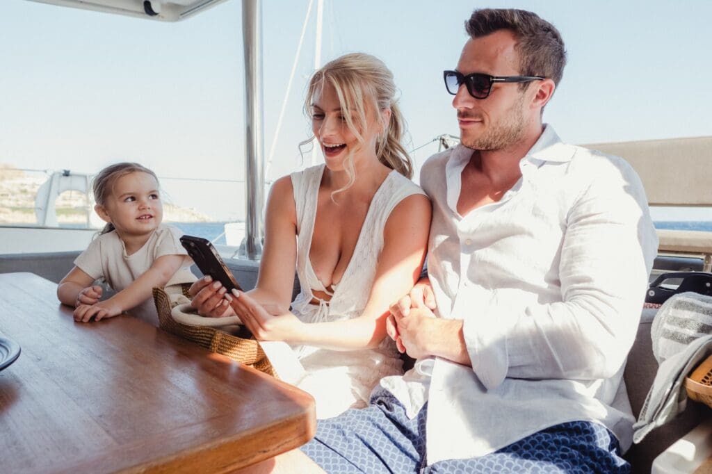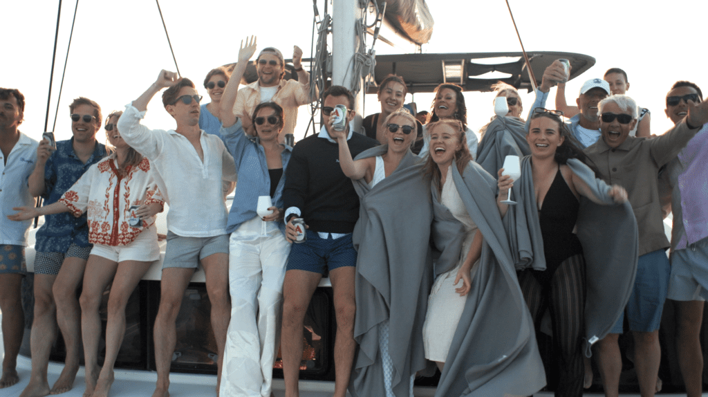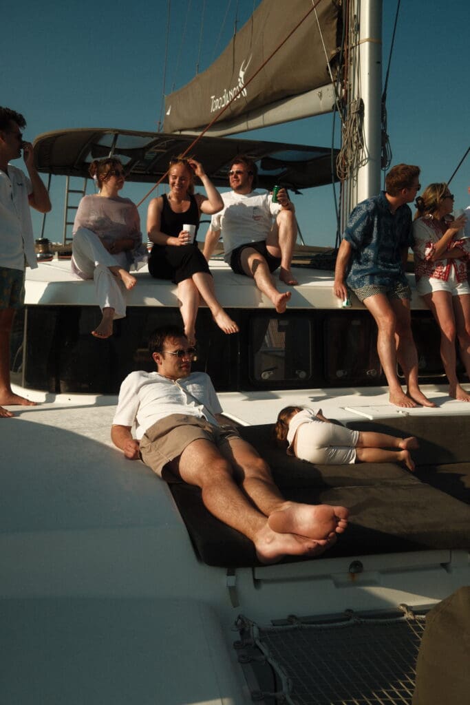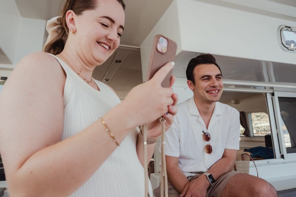 We had edited a teaser film of the wedding the day before, and we got to show it to Katie and Will while we were out on the water. Watching their reaction to their own wedding film in person, on a boat in the middle of the Mediterranean, is a core memory for us. It’s those moments of connection that make us feel less like videographers and more like guests with cameras.