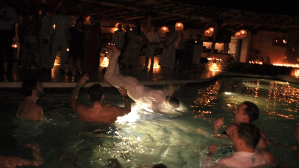The energy climaxed in the best way possible. Will led the charge, diving straight into the pool to end the night, though he did have the foresight to take off his Jack Davison suit and his Dad’s Patek Philippe watch first. Plenty of the guests followed him in. It was the perfect ending to a day that was all about letting go and having fun.